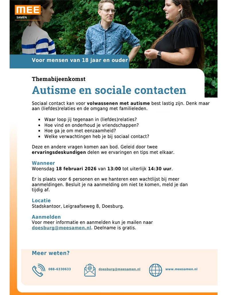 Voor meer informatie en aanmelden kun je mailen naar doesburg@meesamen.nl. Deelname is gratis.